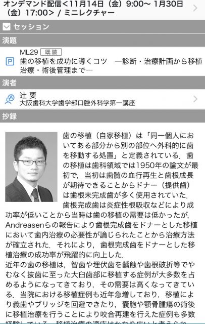 先日開催されました。日本航空外科学会にて辻要先生が移植について講演されました。若手の歯科医師の先生向けの講演です。辻要先生は移植の分野においても実績を残され、指導する立場になっております。当院では保険で行える移植を多数行い、皆様に喜んでいただいております。条件が合えば保険でできる内容ですので、ぜひご希望の方はお知らせください。統計に合わない場合は自費でも移植させていております。